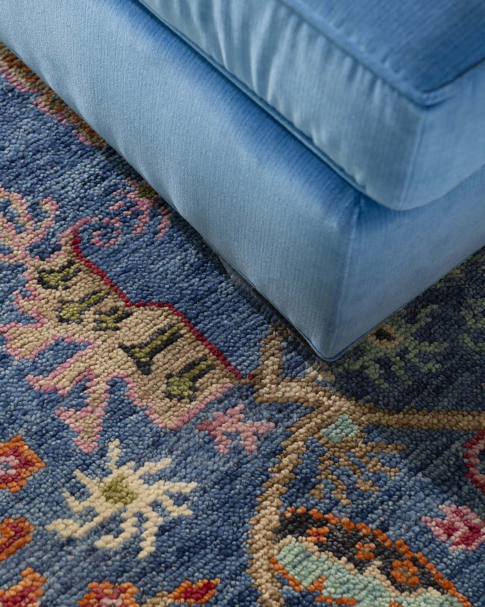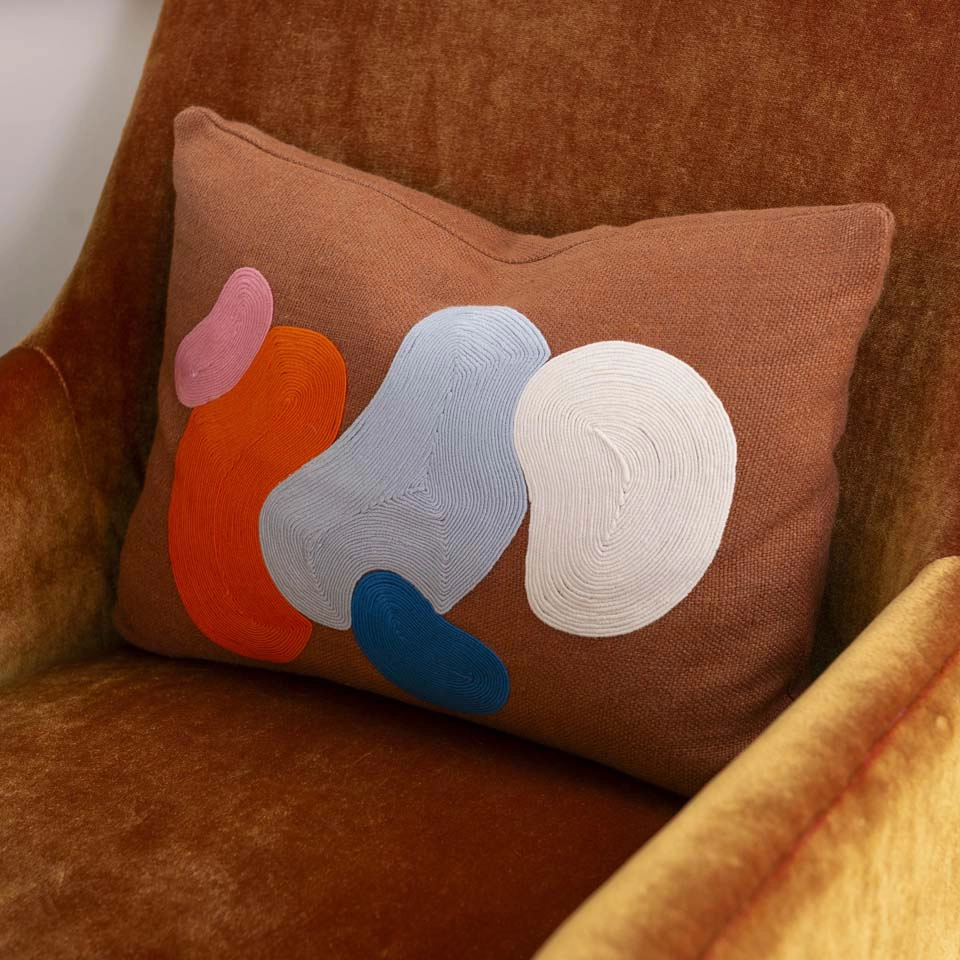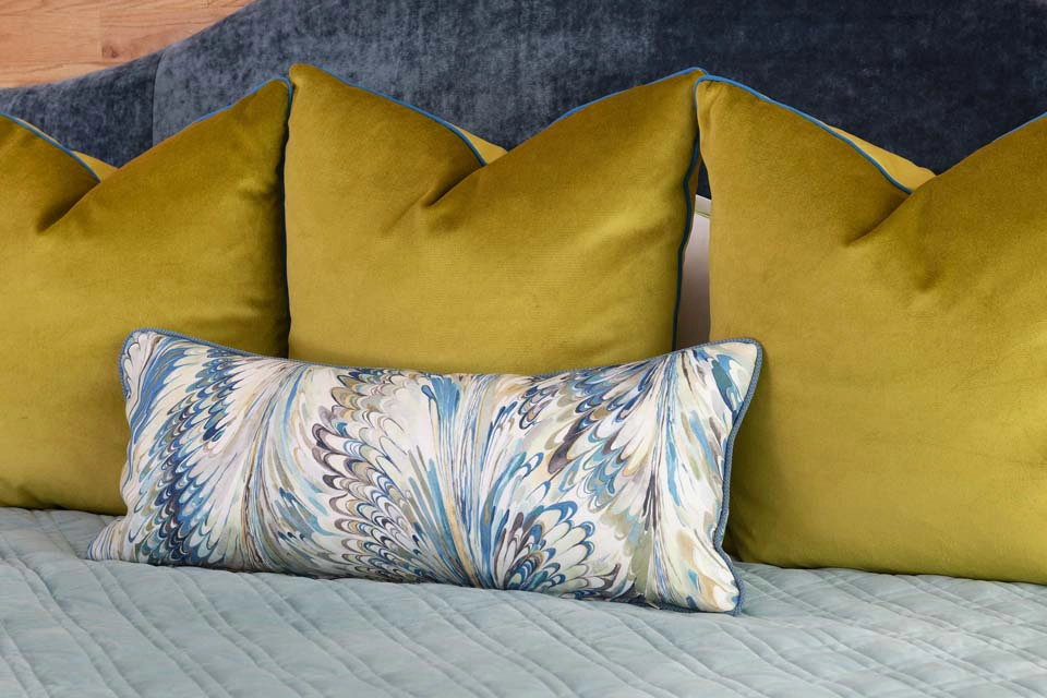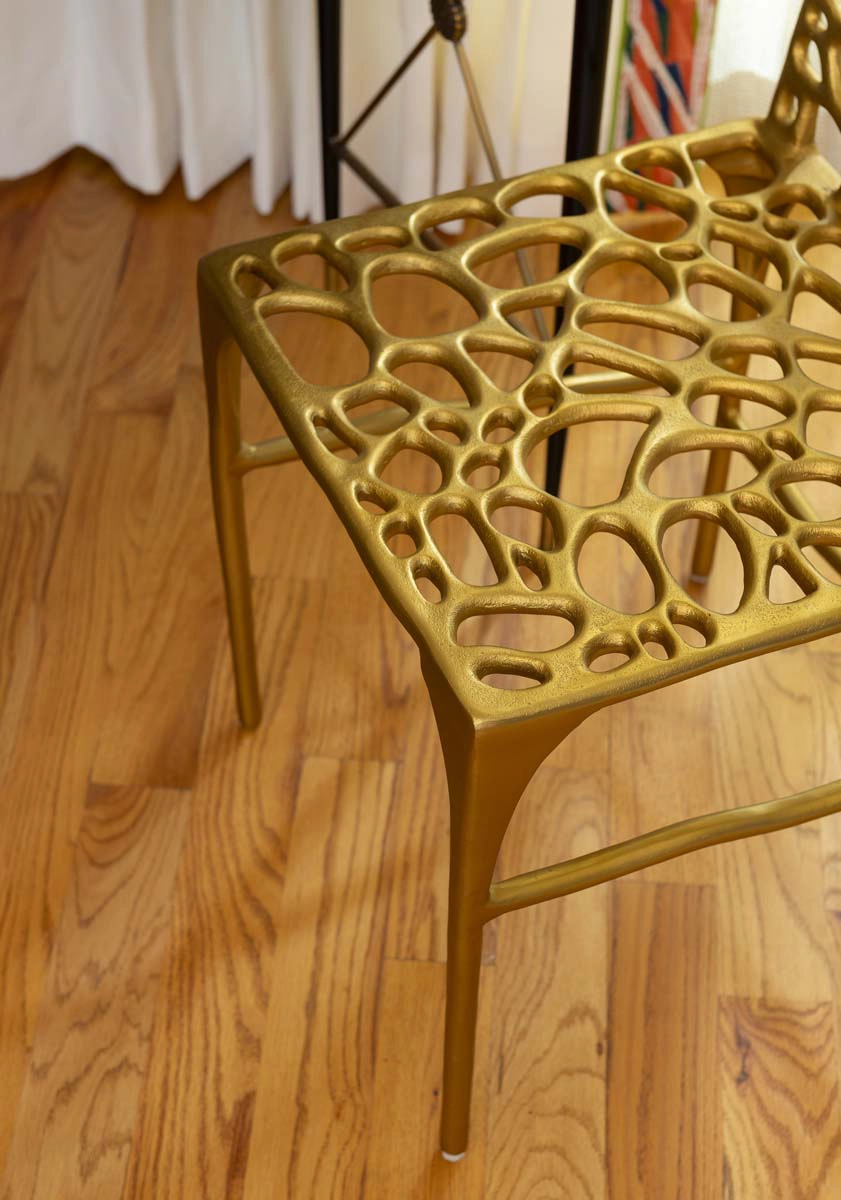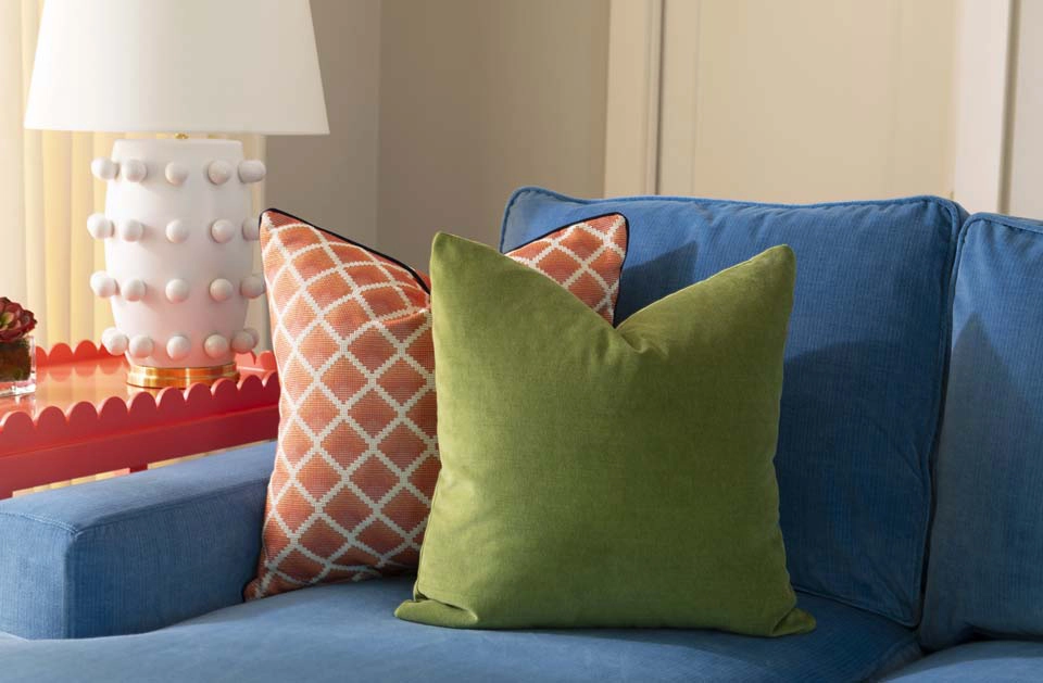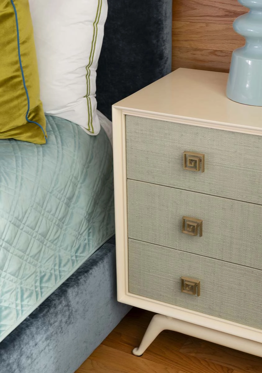 Each bedroom carries its own vibrant personality, while textural details add playful sophistication across the home. Beaded artwork, a statement dining room chandelier and faux-mohair game chairs add layers of tactile interest and visual punctuation.