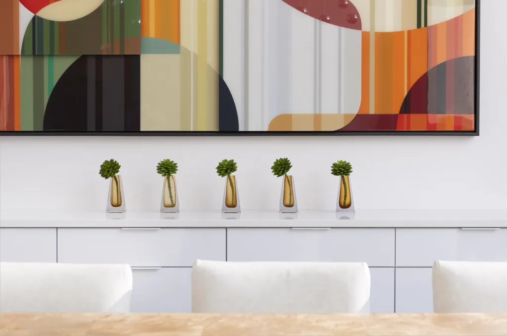 Mid-century modern design is not cluttered or ornate. It avoids heavy detailing and overly traditional pieces in favor of simple, purposeful design. While it can include vibrant accents, it is not maximalist and relies on clean balance to avoid overwhelming the space.